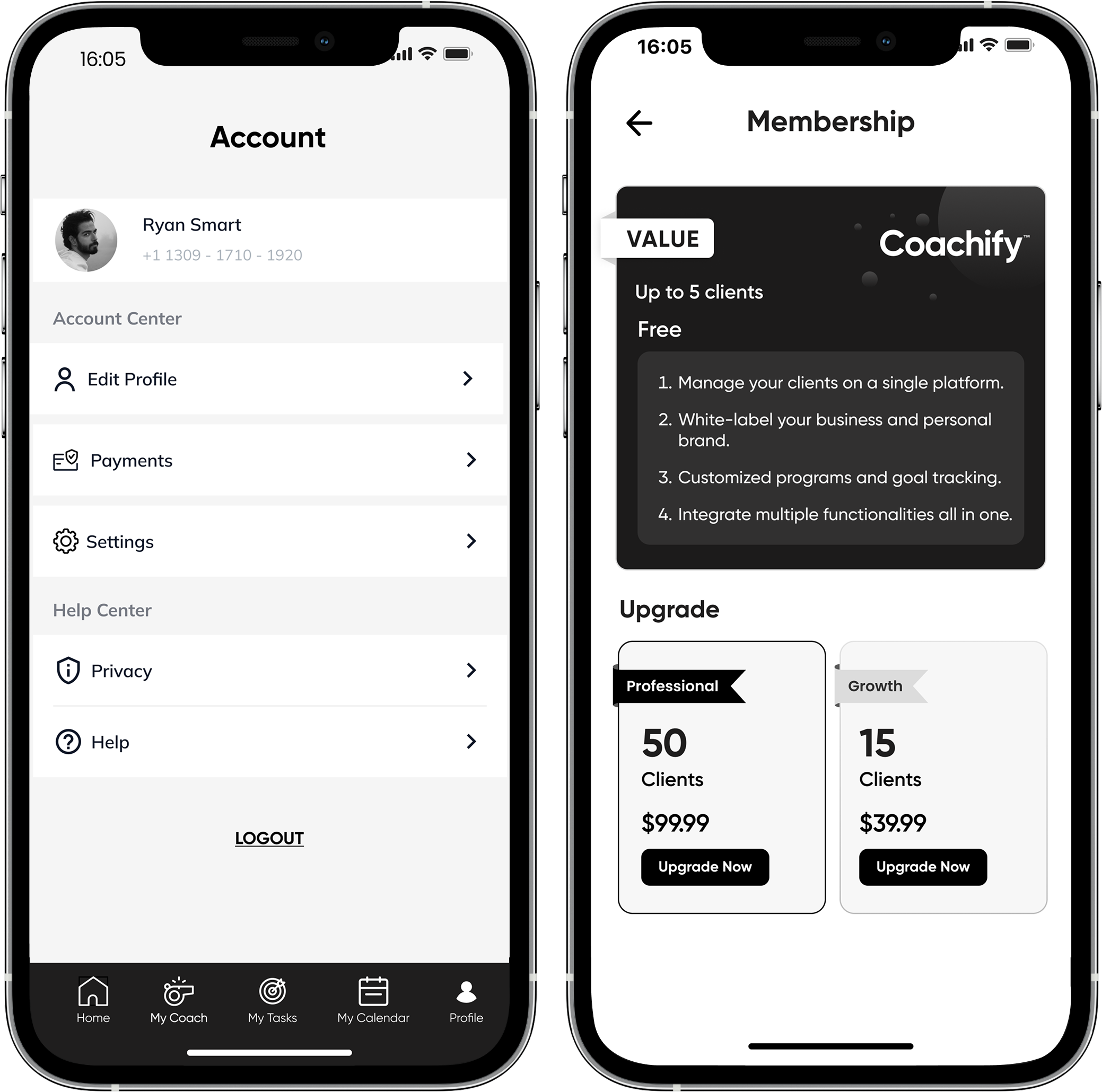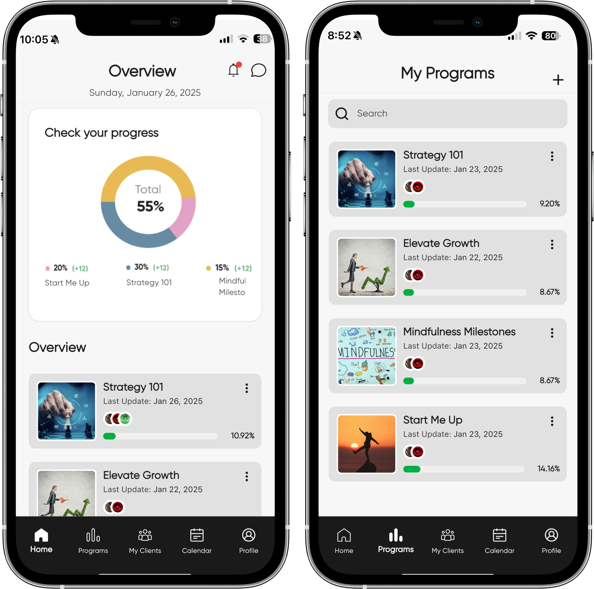 Coachify Pro streamlines coach-client collaboration with tailored programs, task management, progress tracking, and invoicing.
